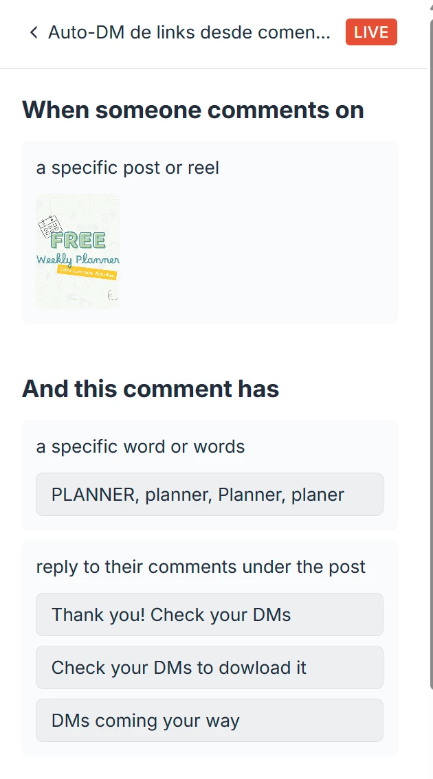I have created this automation but the answer under the comments doesn’t trigger. But the rest of the automation does work, the DM and such..