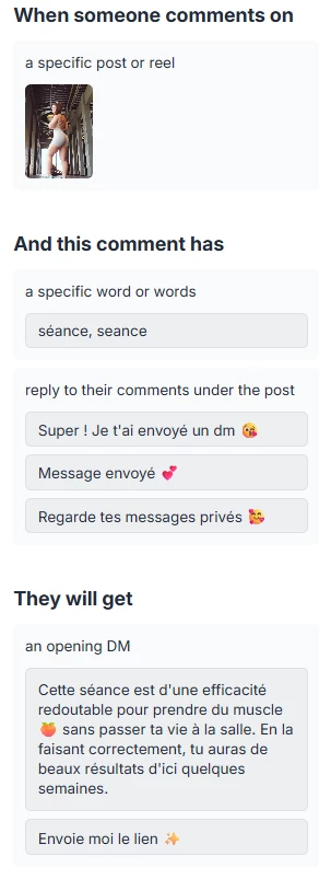 When the person clicks on the "Envoie moi le lien" button, the "DM with the link" step is not triggered.