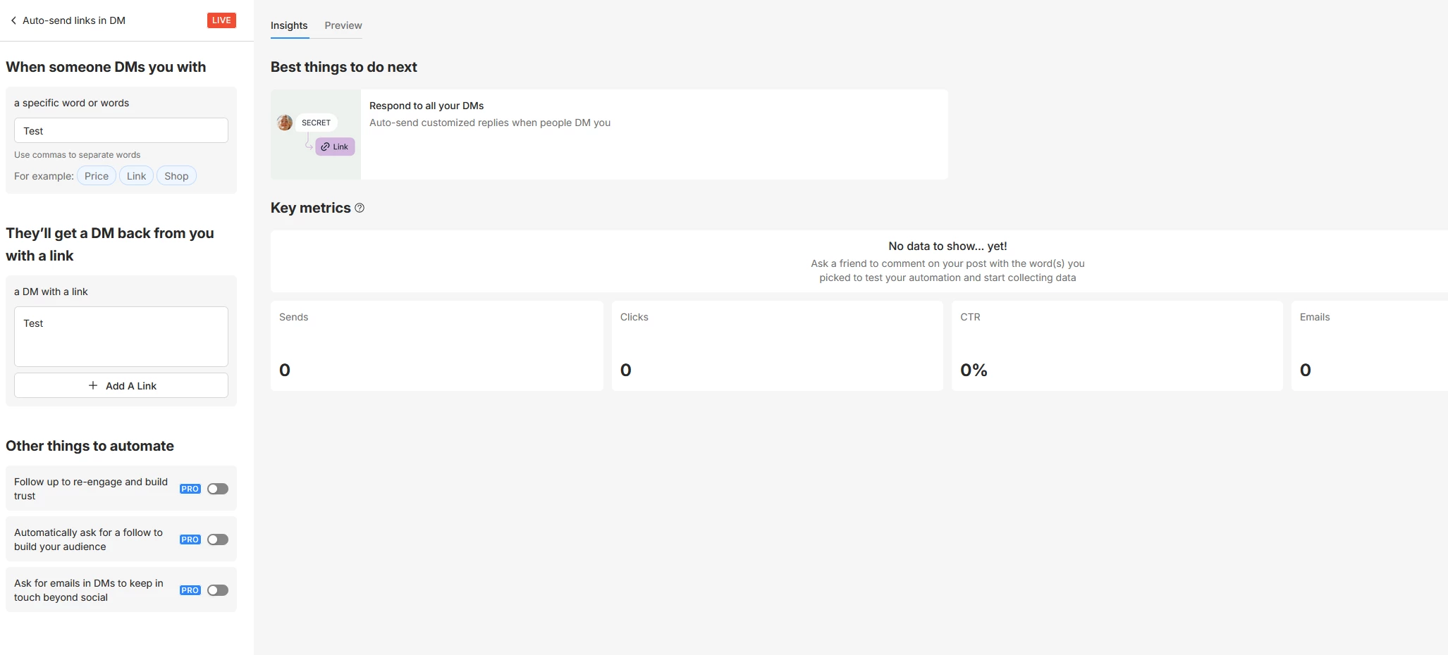 Have set up a very basic DM automation for testing purposes and it simply does not seem to be working for me.