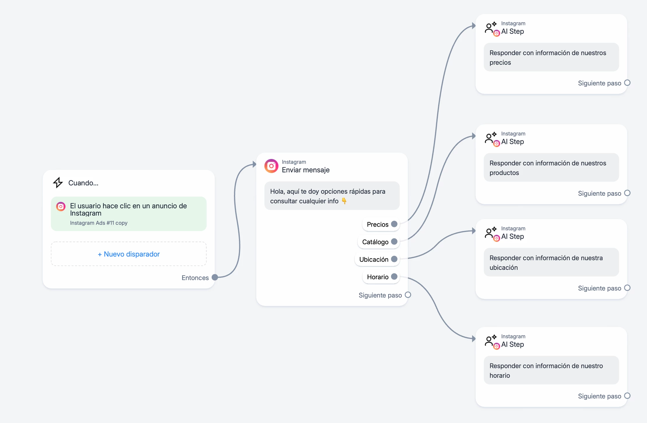 The documentation here is the way I do it (and it works): https://help.manychat.com/hc/en-us/articles/14281321942428-Instagram-Ads-Trigger