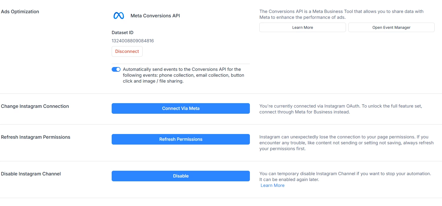 I have created the Many chat account, but it doesnt seem to be linking to my Instagram page. I have created 2 automations but they are not showing on my Instagram page. Can someone help please thanks