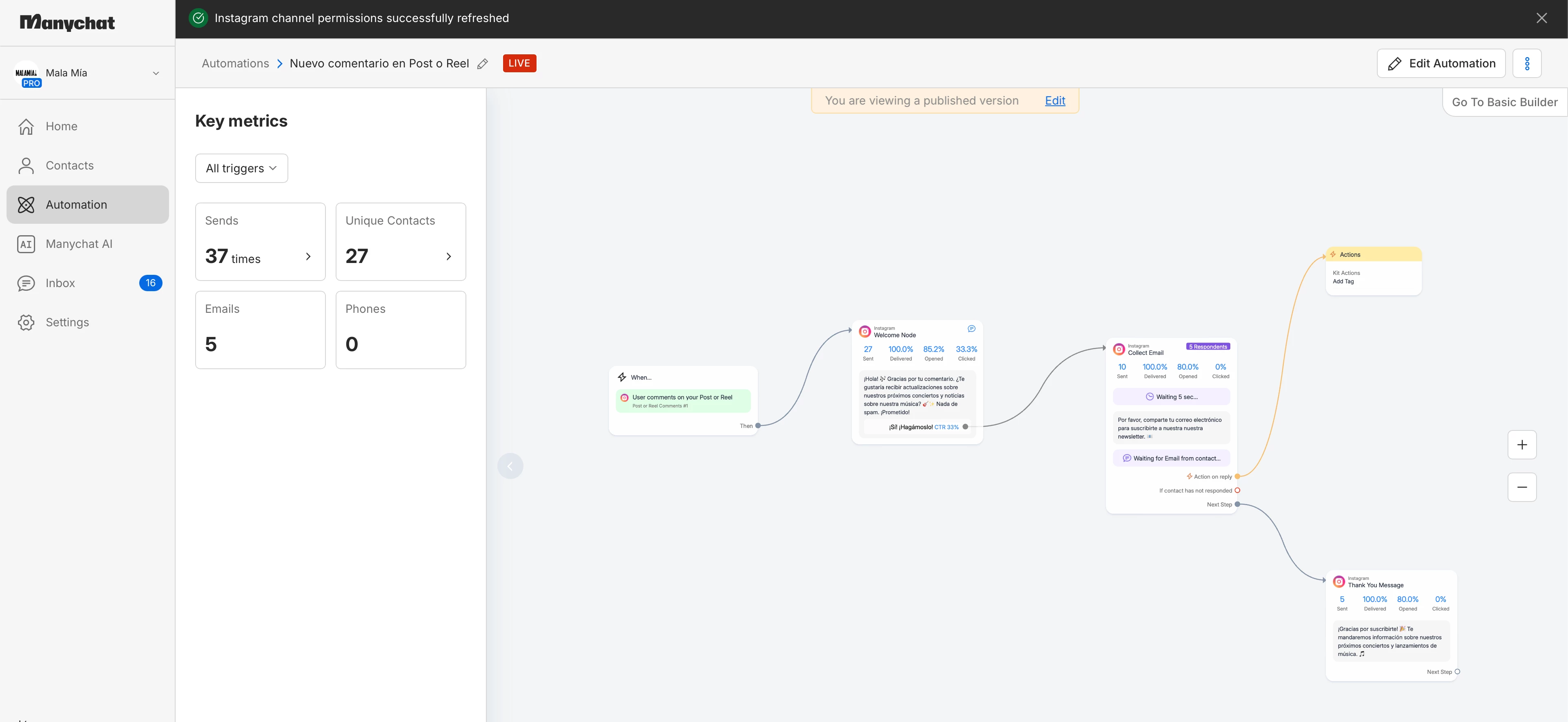 I am running an automation of comment reply that isn’t working properly. Sometimes, it works, sometimes, it doesn’t. Same posts, same trigger words. I already refreshed the permissions but it didn’t change anything. The leads comment but it doesn’t iniciate the automation (only half the time). Trying to talk to someone on support for days but it is impossible!