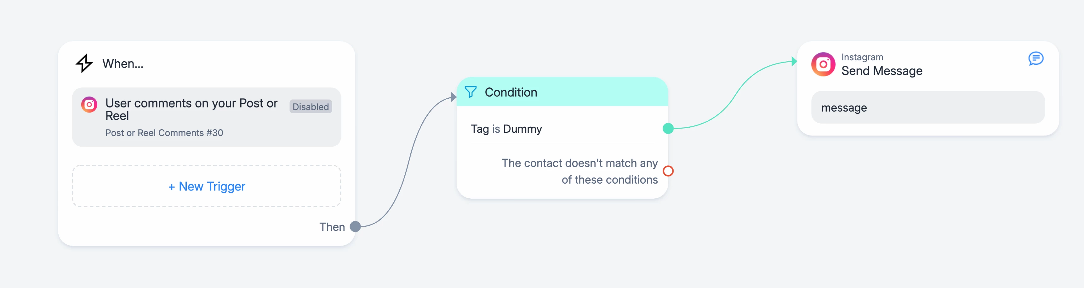 For example, I create a new ‘Dummy Tag’ and I only send the message if the contact has the ‘Dummy Tag’.
