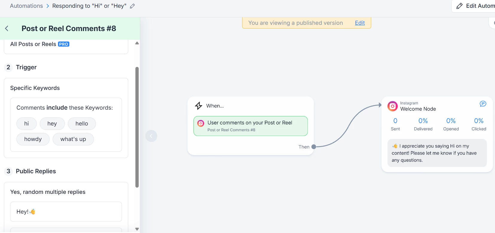 All I am looking to do is respond in an appropriate manner to someone in the comments of my content after they have said something simple like, “hi”, “hey”, or “hello”.