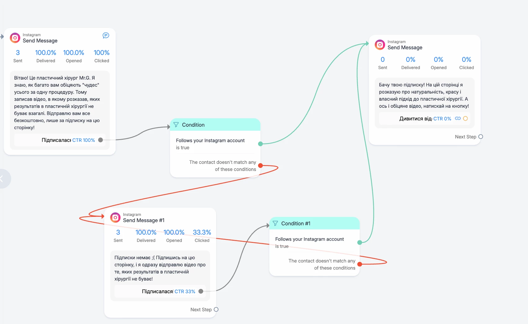 Conditions “Follows your account” always return false.