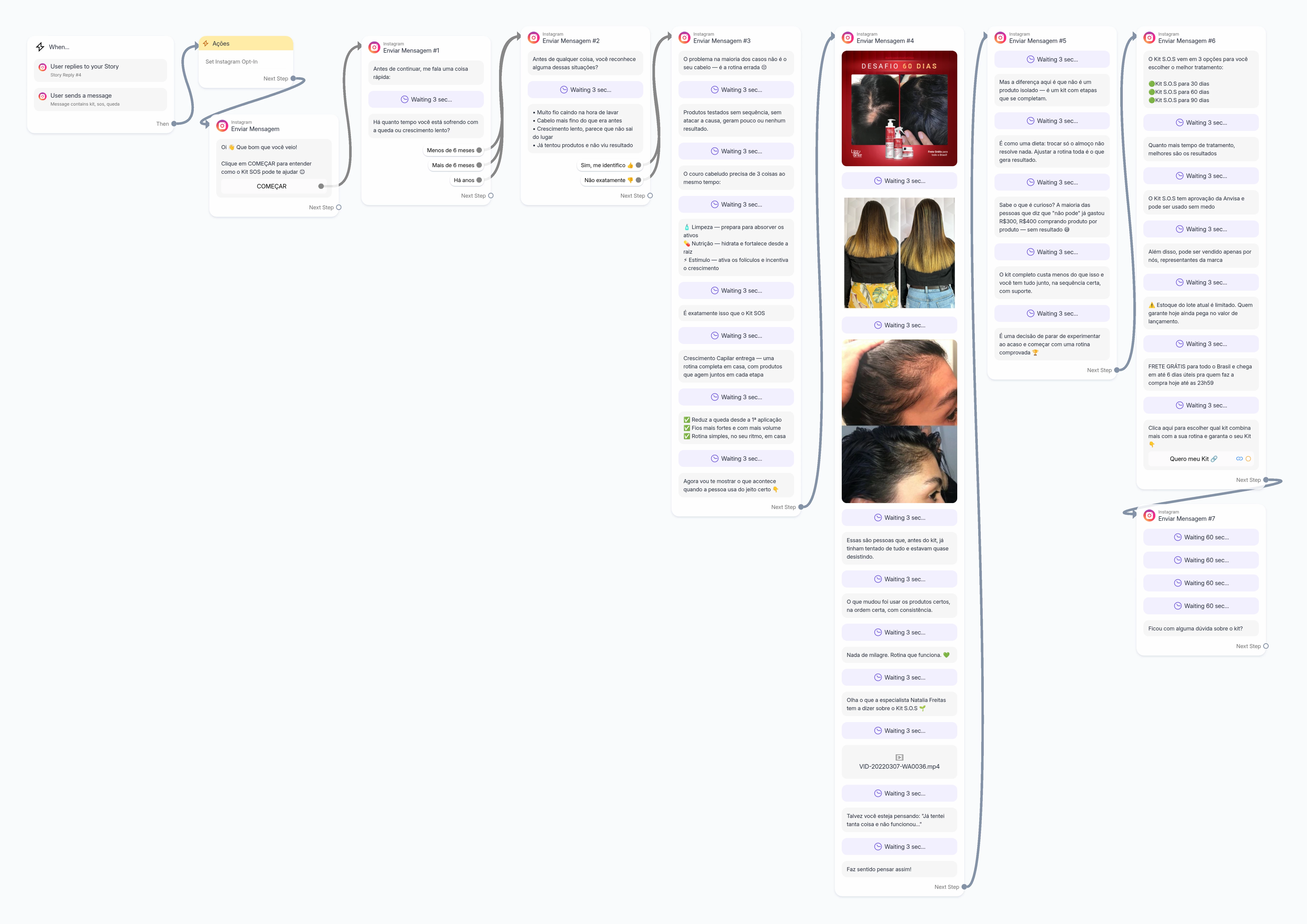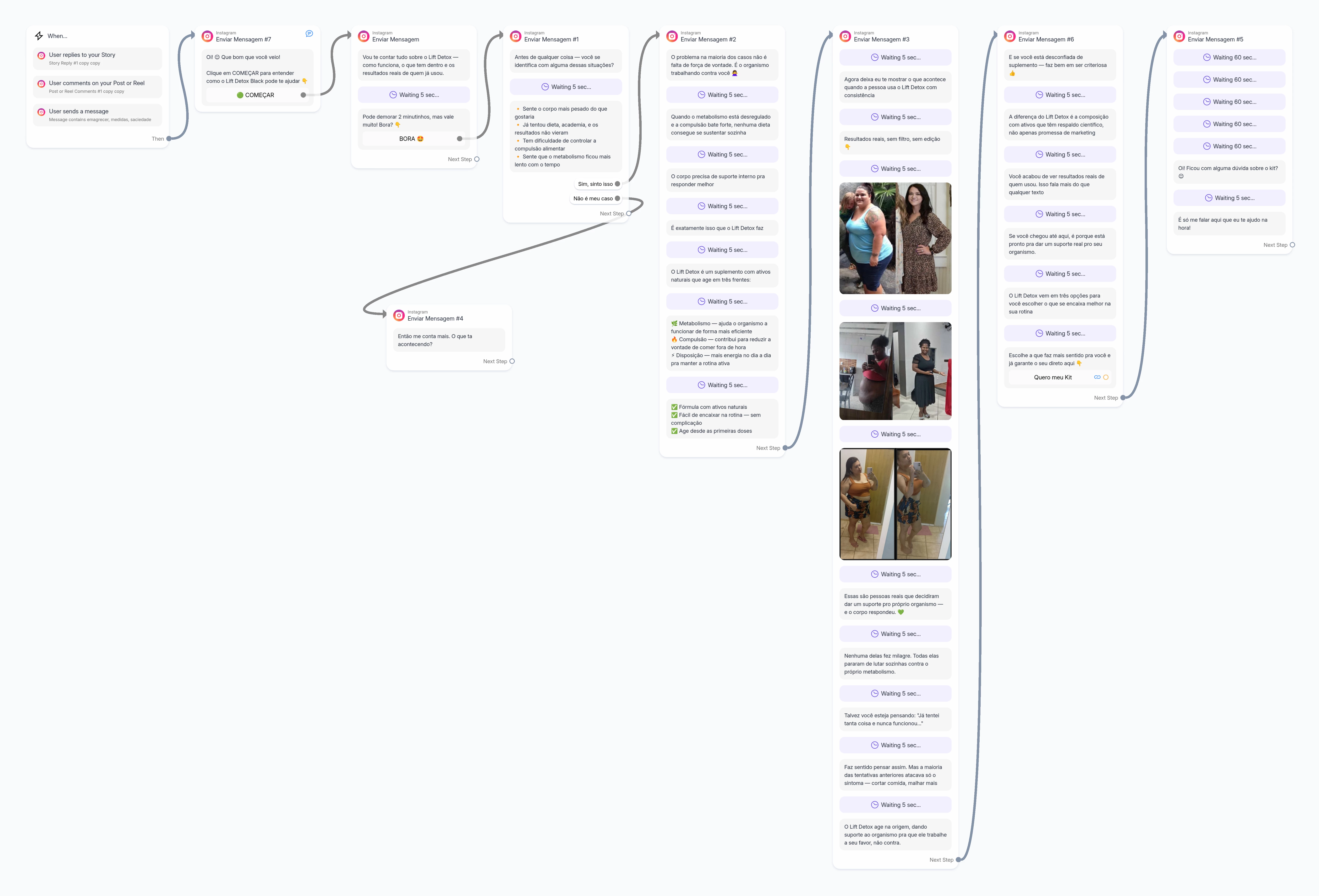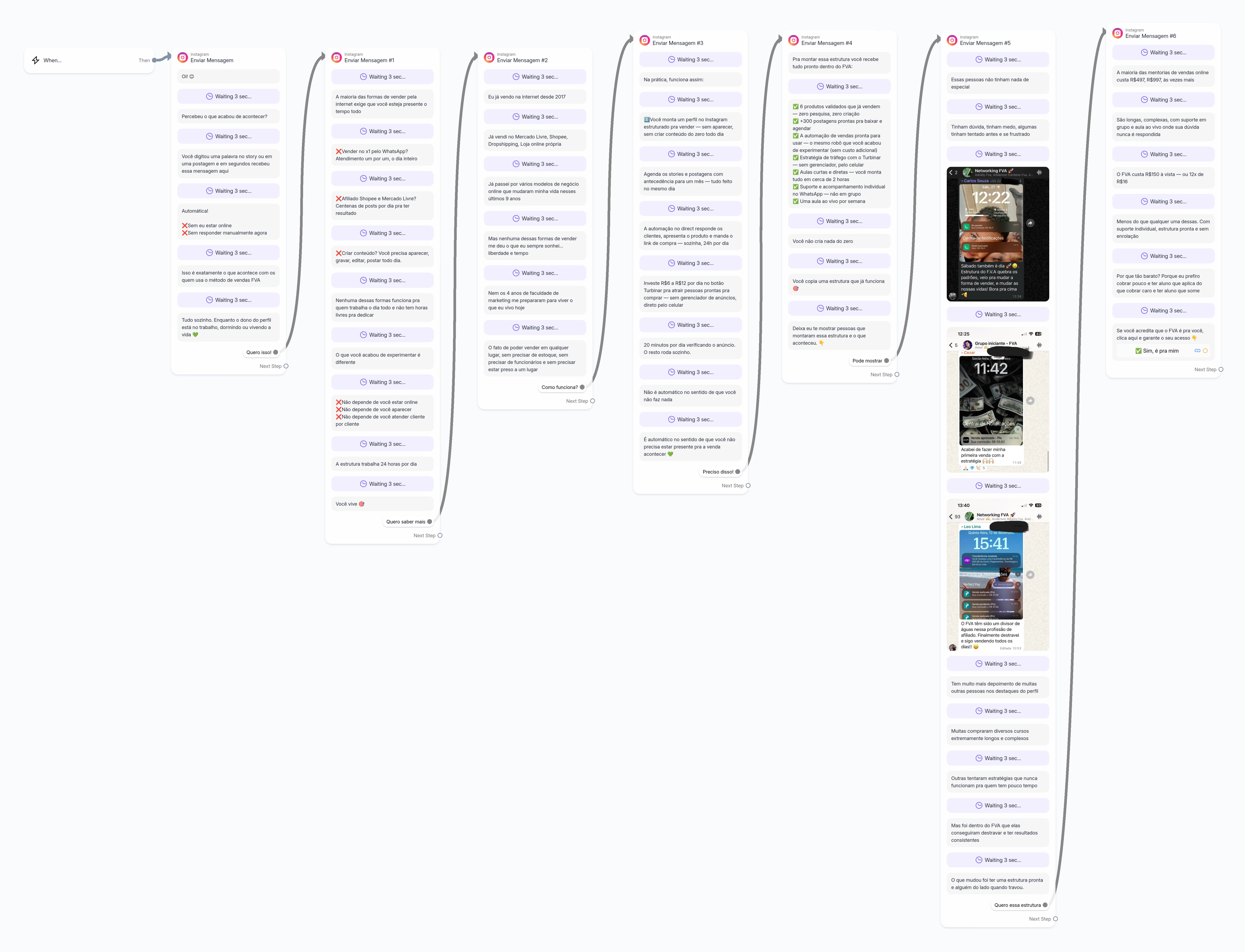 Abaixo vou deixar alguns fluxos que estava usando e que horas depois de cria-los (mas não ativar) a minha conta do Manychat foi desativada mesmo depois que a IA do próprio Manychat avaliou e aprovou o fluxo.