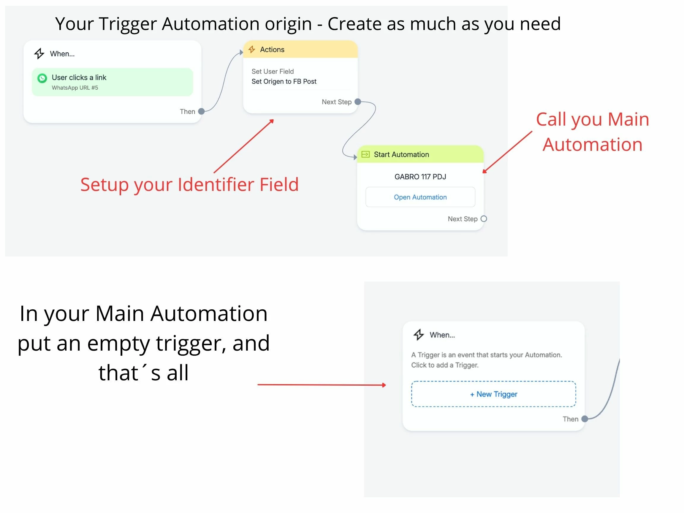 Ok, I hope this can help you, you need to create a separate Automation with the Trigger you use and also you can set a Field for example Origin with the value you want set for origin, this automation Call the main Automation you use, you can make several Small Trigger Automation who calls and setup the Field to control where it comes the trigger, this small triggers you need to create one for each source you need to identify, depending where you are using it.
