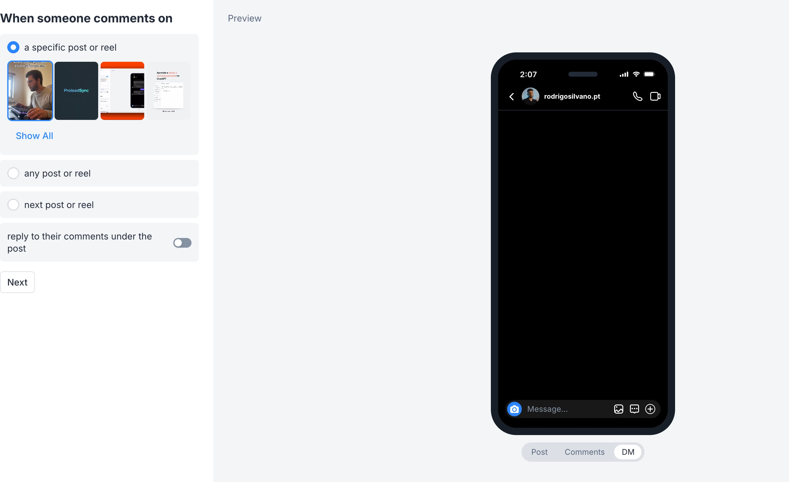 How do I see a visual version of my IG DM automation after the user comments a particular keyword. I can’t figure that out.