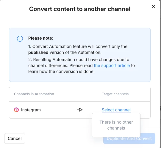 But that’s easy. Just go to your automation list, click the three dots and select Convert channels: