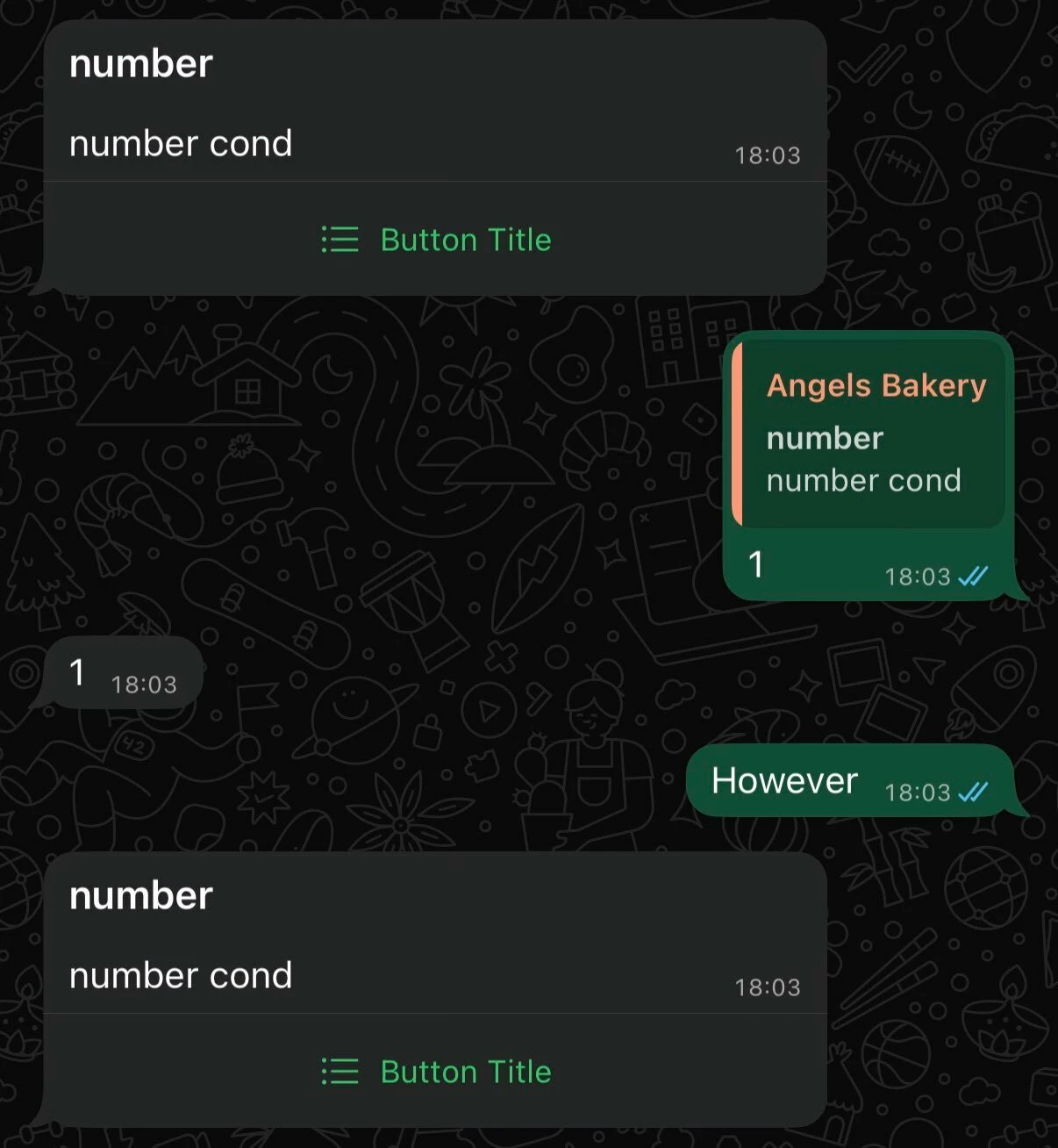 And for every condition, you set EXACTLY the same text you defined for each Quick Reply. (This will work as a switch between all the options, and you will be able to connect the corresponding messages in your flow)