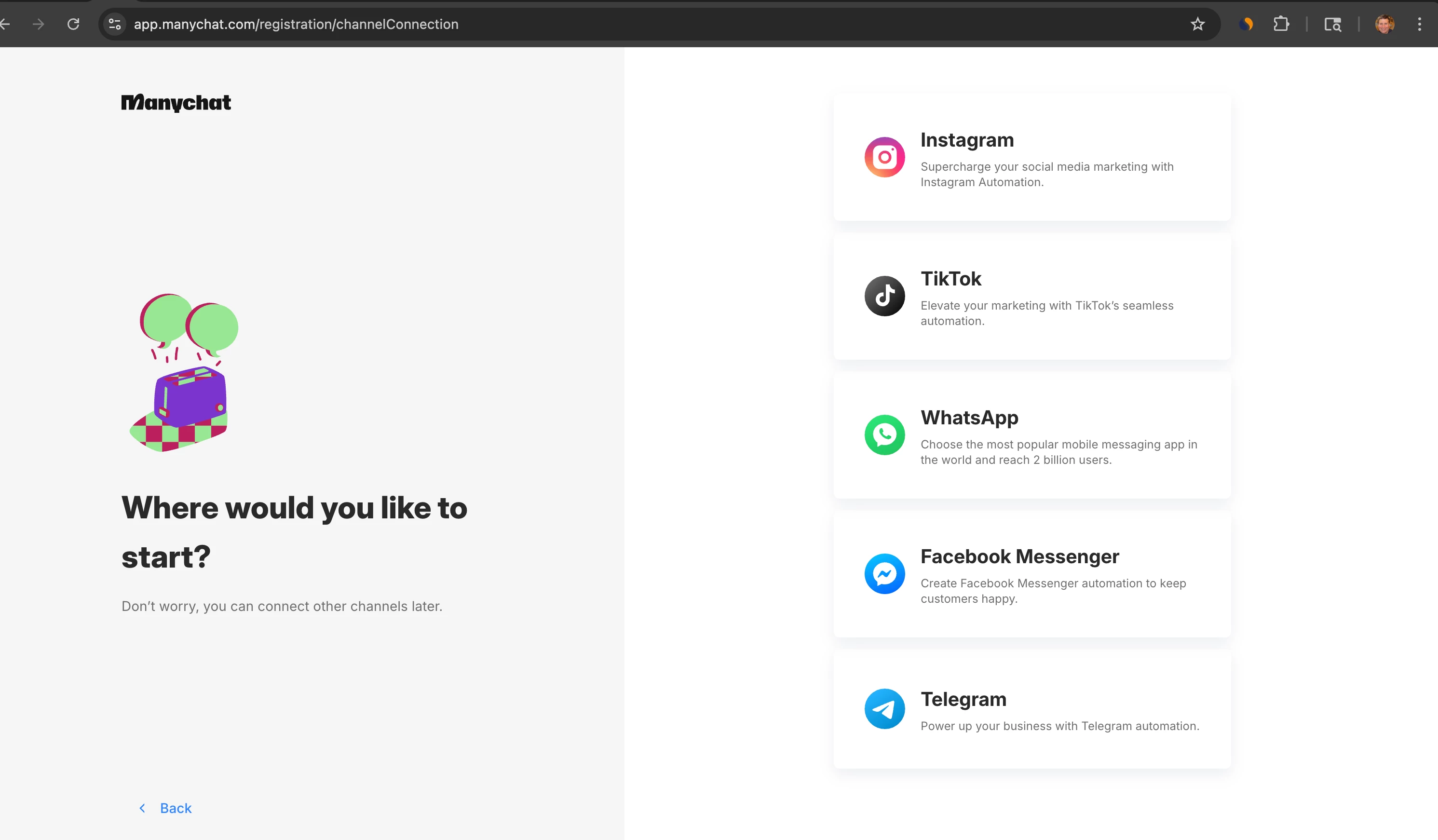 I can’t seem to complete adding my Instagram account to ManyChat.