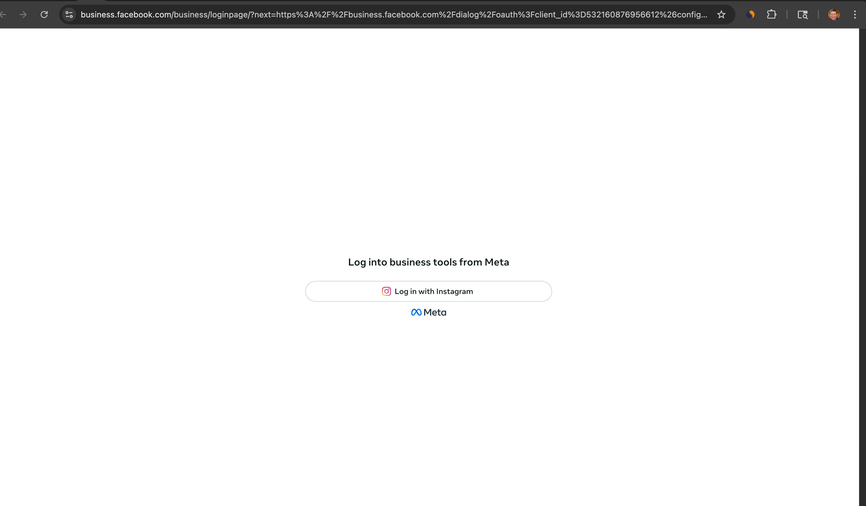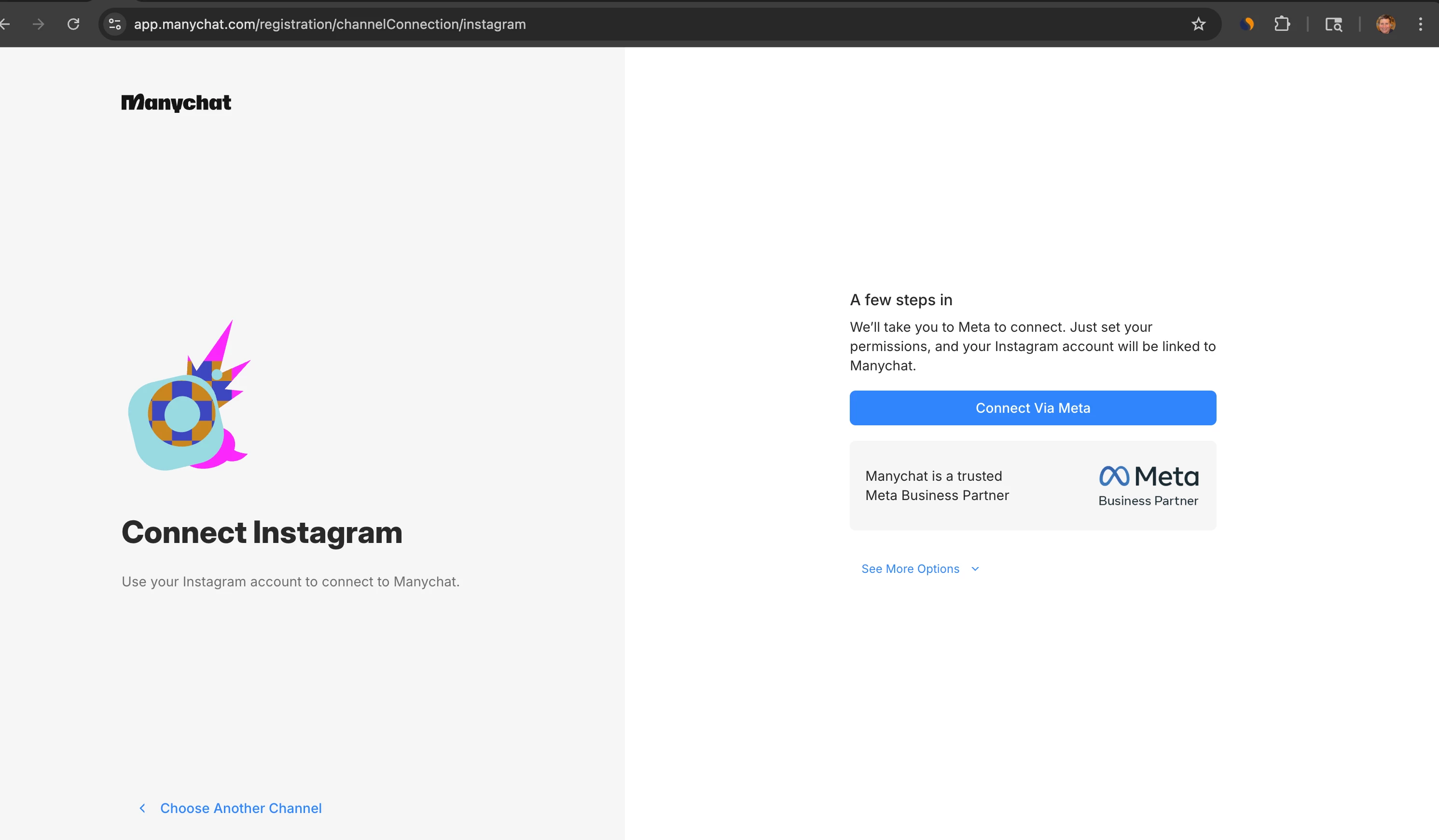 On the next screen I click “Connect Via Meta”