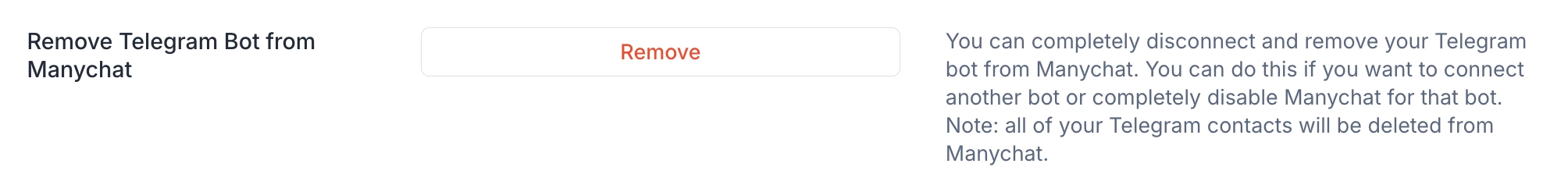 I couldnot remove Telegram bot on manychat, there isnot ant buttons to remove, how can I do it?