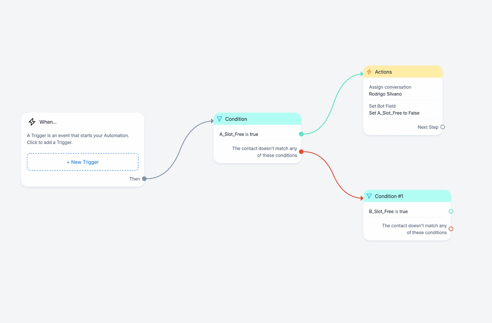 For example: When the tag “conversation in course” is removed, set the bot field “A_Slot_Free” to True.