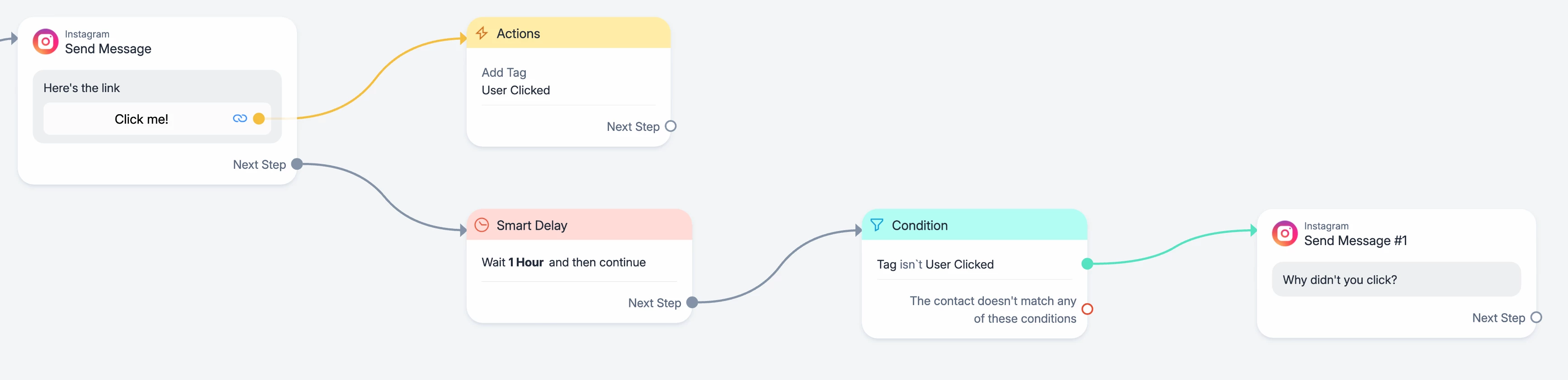 I have an automation and at the end I’m sending a link to website. However, I have no idea if link was clicked or not. Is there a condition or something that I can check if link was clicked, and if not to ask them about it? All I’m doing right now is tagging the user with “warm lead” How can I increase this engagement by checking if link was clicked? Thank you