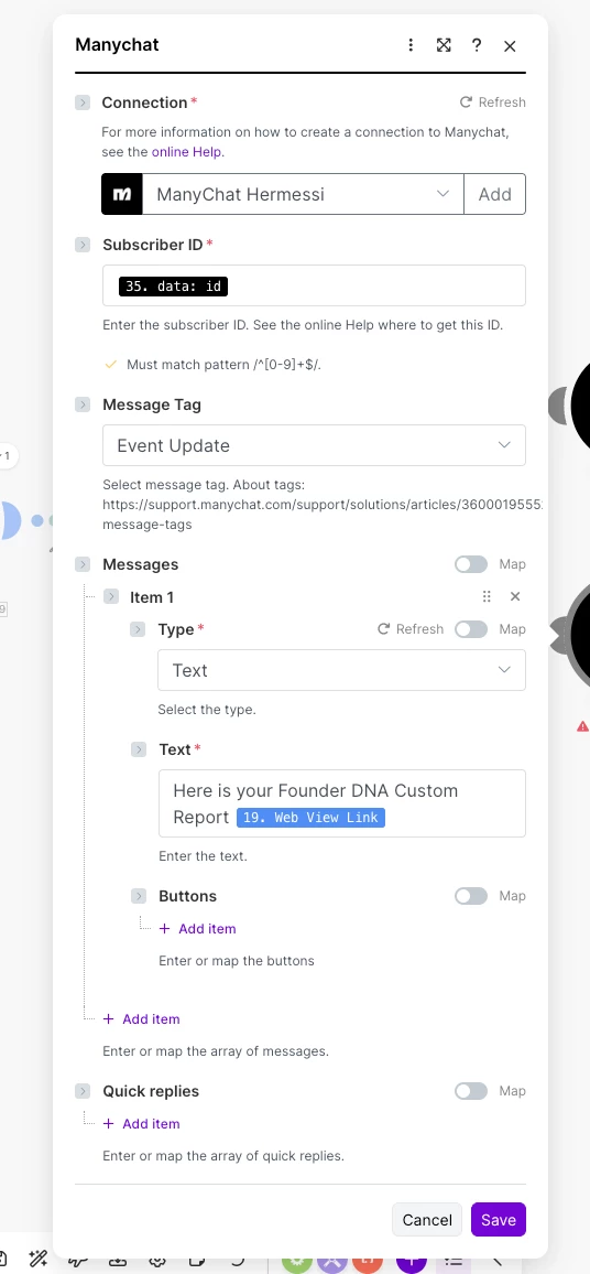 I keep getting a [400] Channel is disabled for the Send message Manychat node. Help please!