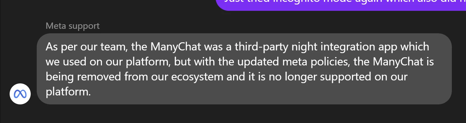 Manychat as Partner App Not Showing up in Ads Manager. And I cant find the JSON Code