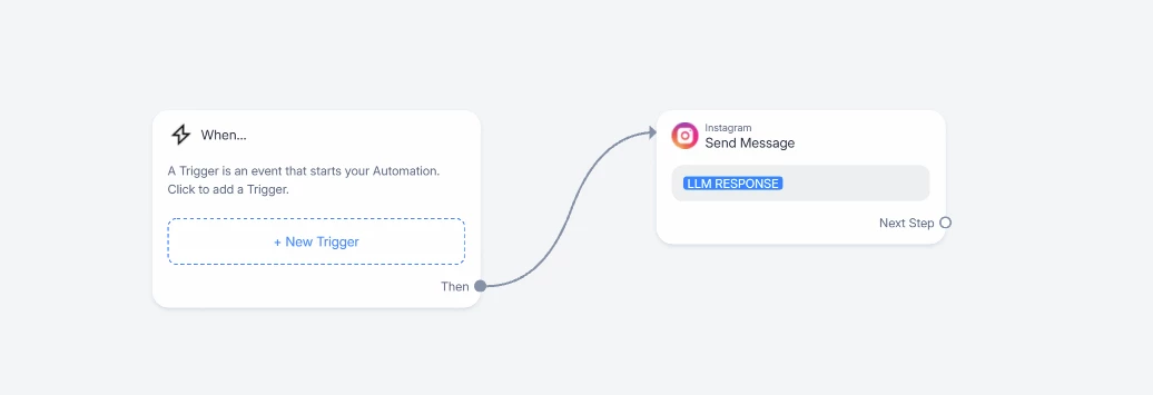 No trigger, just a message step with the custom user field you use to store the LLM Response.