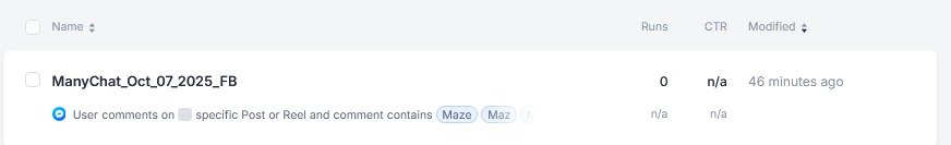 As can be seen above, I have a Messenger Automation live that has “0” Runs. Users are commenting the correct Keywords and are receiving the auto-reply comment but are not receiving the DM in Messenger. This has happened for several of my previous Automations with the same set up. This has only started happening in the last few weeks. Prior to this, the same set up was working fine.