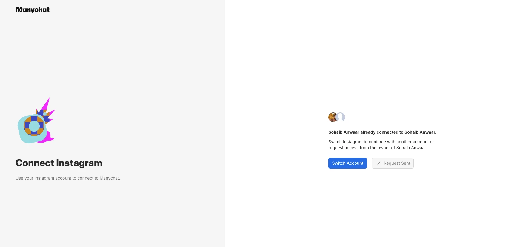 I'm having trouble connecting my Instagram account to ManyChat. When I try to link it, I get a message saying the account is already connected to another ManyChat account but I honestly can't remember which one I may have used before.