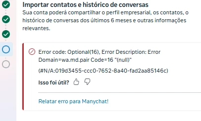 Estou tendo problemas ao vincular o WhatsApp Business no momento em que faço a leitura do QR CODE aparece um erro desconhecido no qual não consigo resolver nem encontrar suporte para solucionar.
