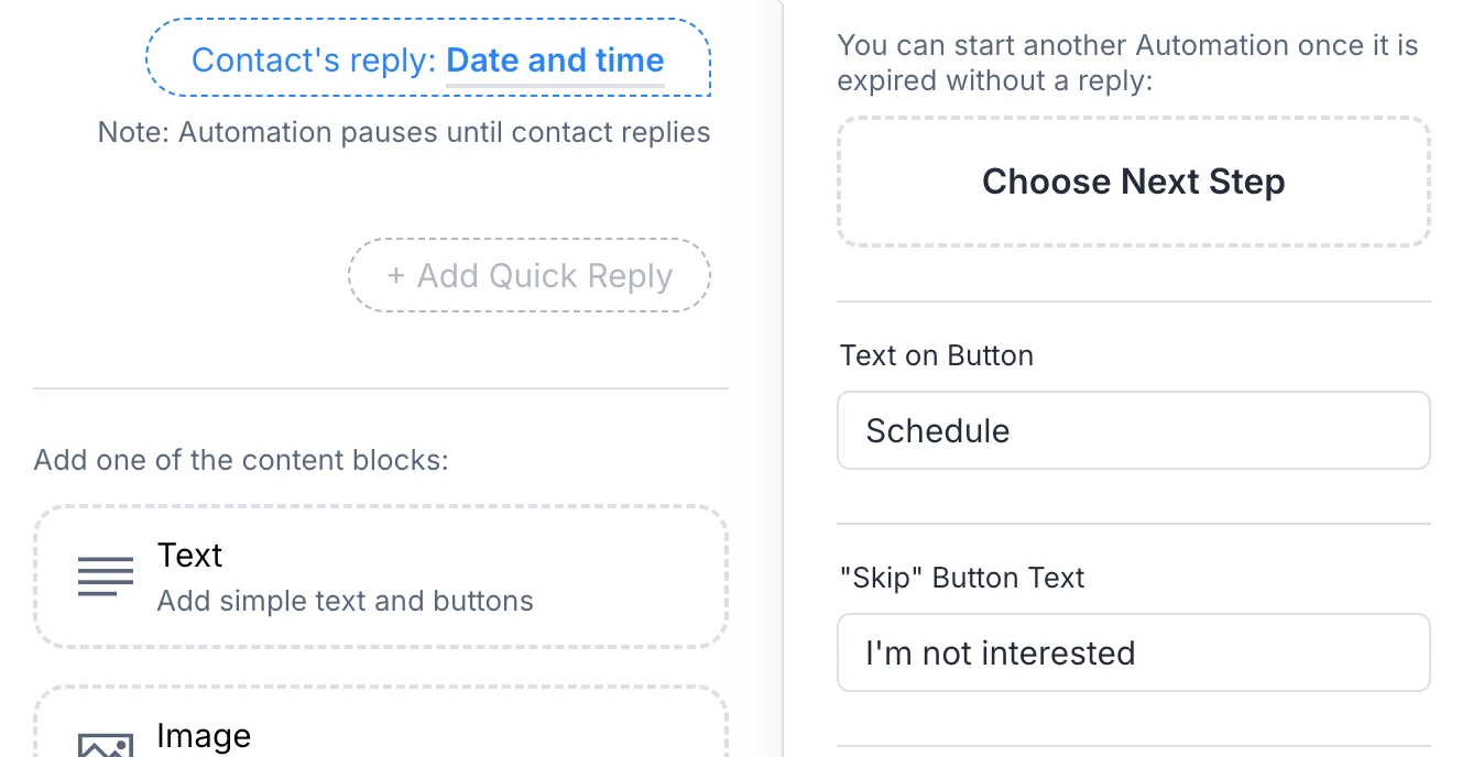Hi, I would like to know the purpose of Skip button in Data collection block for Date&Time. I am new to Manychat and was facing an issue with the Skip button which appears with the Date and Time button.