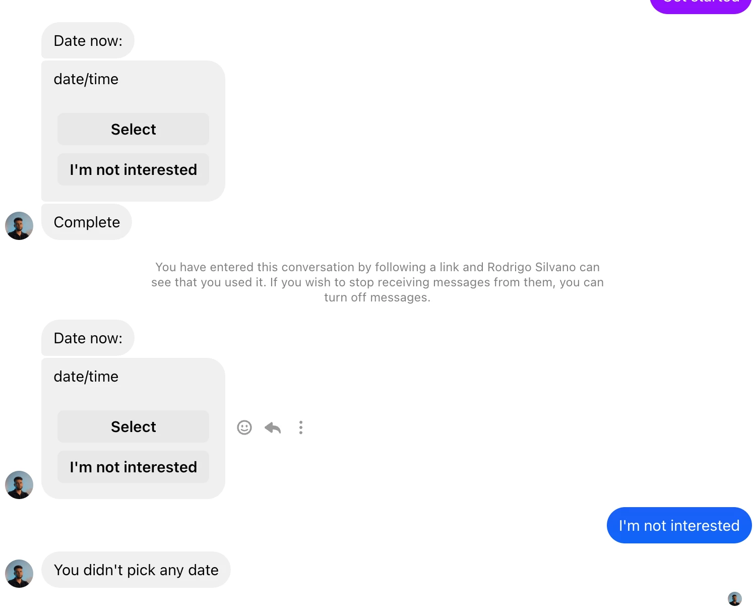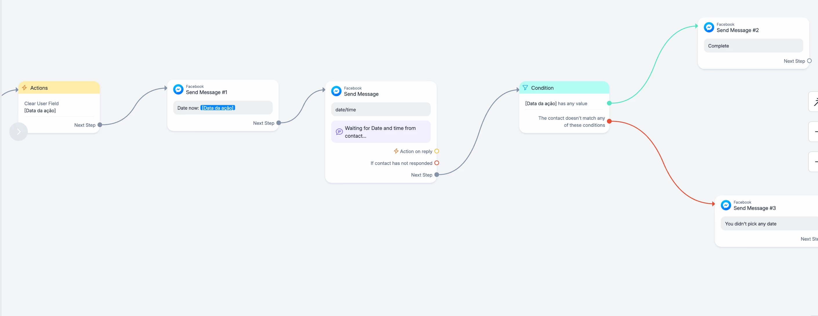 I idea is that the user books an appointment with Date and Time button and after selecting the date and time the user will be asked further details which are in the flow. But when the user selects the Skip button instead of Date and Time, the flow continues. I want the flow to be closed if the user use Skip button. Any suggestions on how to implement this?