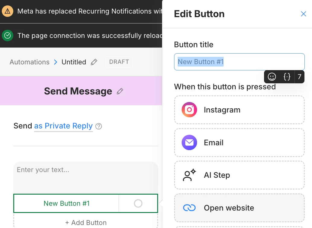 I'm trying to find a template to create a new automation in Many Chat, but I don't see the template to redirect customers to your website. Has it been replaced with another template?