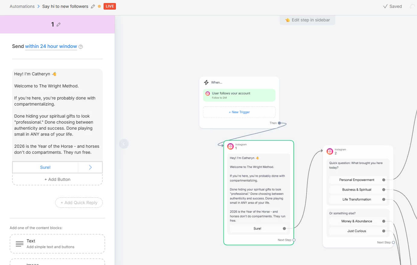2. One DM per user per week limit - Meta only allows ONE Follow to DM message per user per week. If your followers are following other accounts that use this feature, they might not get your message.