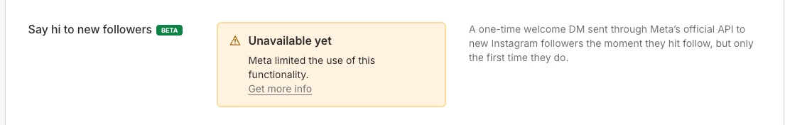 Unfortunately there is nothing you or ManyChat can do, Meta is limiting to only certain accounts for this feature, it’s still in beta.