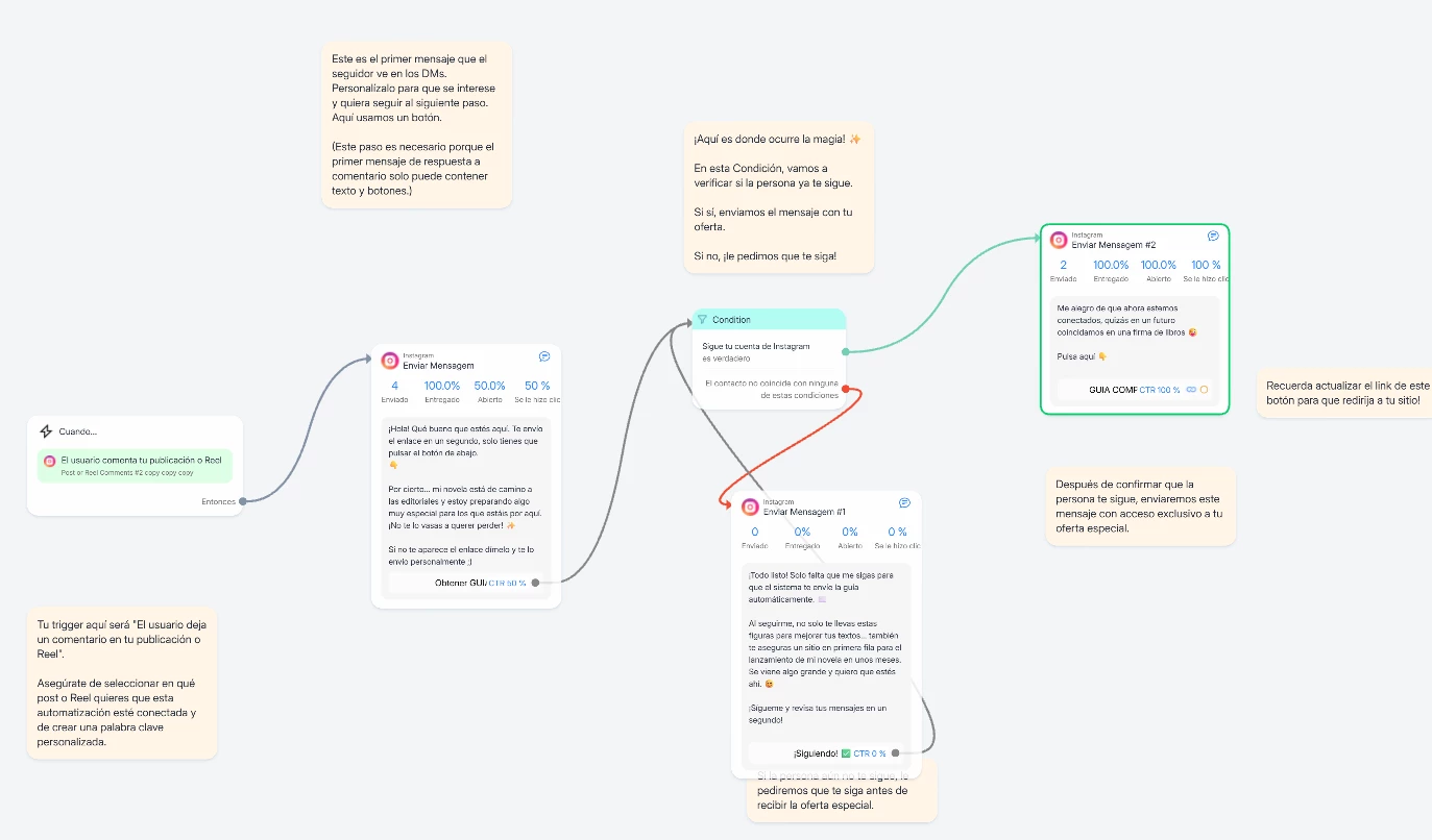 I am using a template provided by Manychat to respond to comments and send private messages.