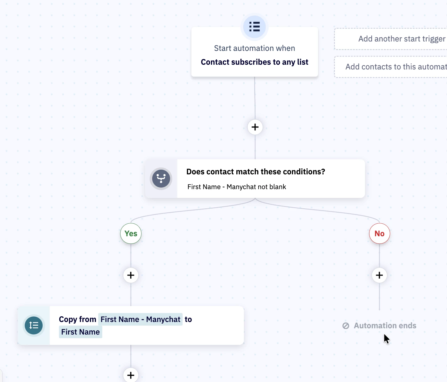 I know how to collect emails through ManyChat and link them to Active Campain. However, I can't figure out how to associate the First Name and Last Name data that I've collected with those fields in the record in Active Campaign. Is there a way to do this without having to rely on a third pary like Zapier?