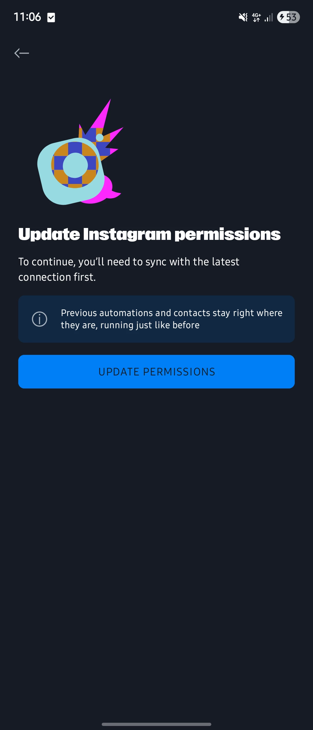 Ive updated my permission however it kept on asking for the same request when im trying to set up auto message for new followers.