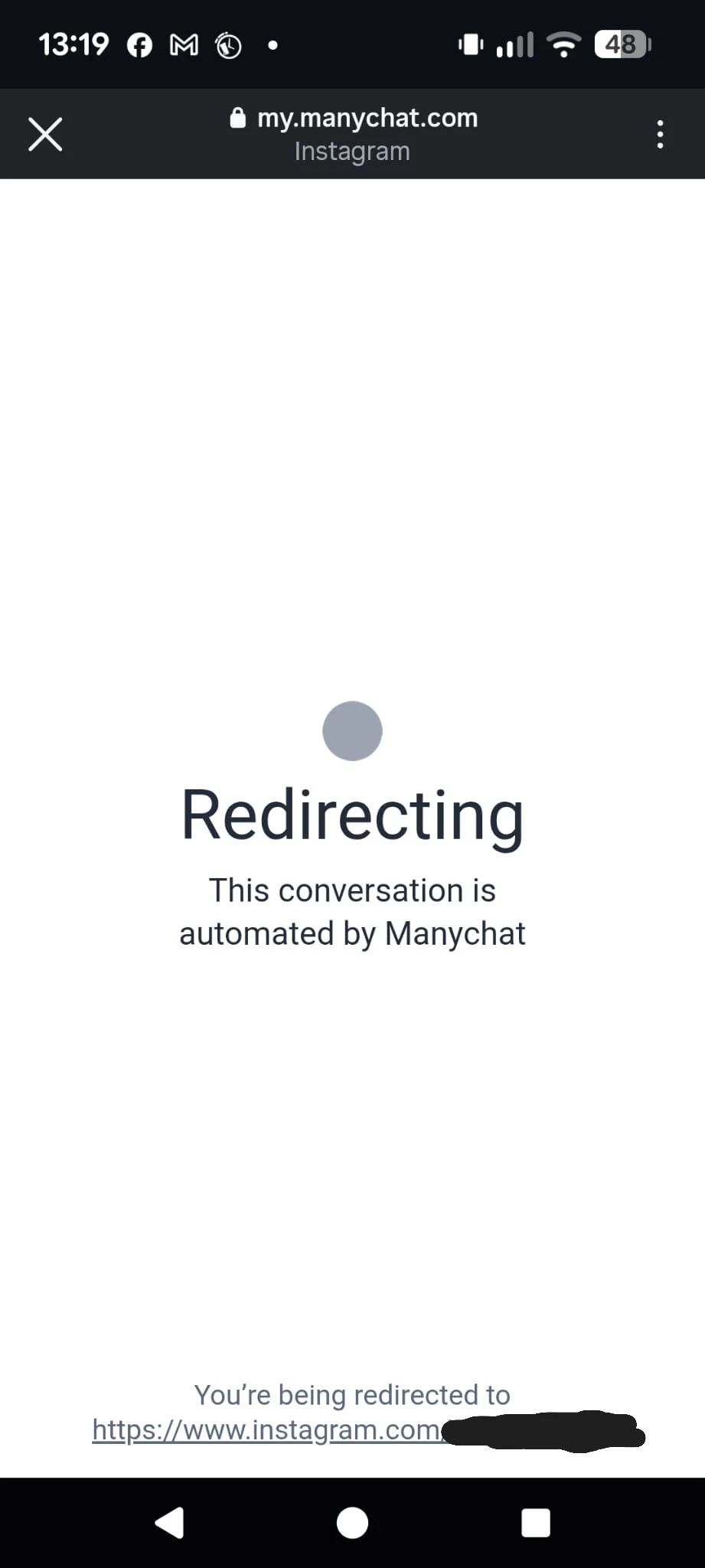 Whenever a new follower gets the Welcome Message and clicks the link inside the flow, Instagram shows a long white “redirecting” page with the ManyChat domain before the actual URL opens.
