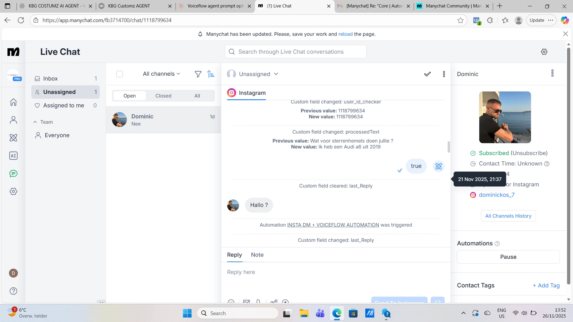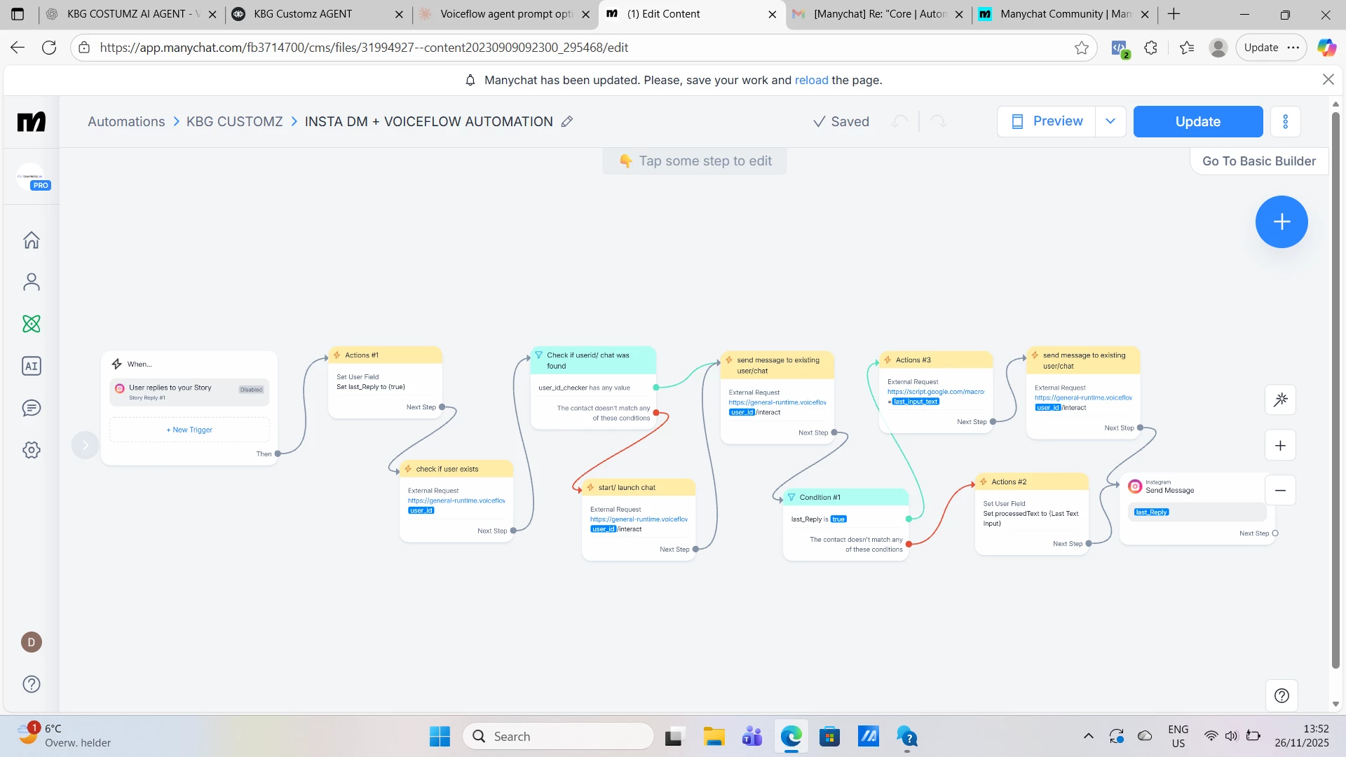 🚨 Issue: Voiceflow Agent + ManyChat Instagram DM Not Responding Correctly