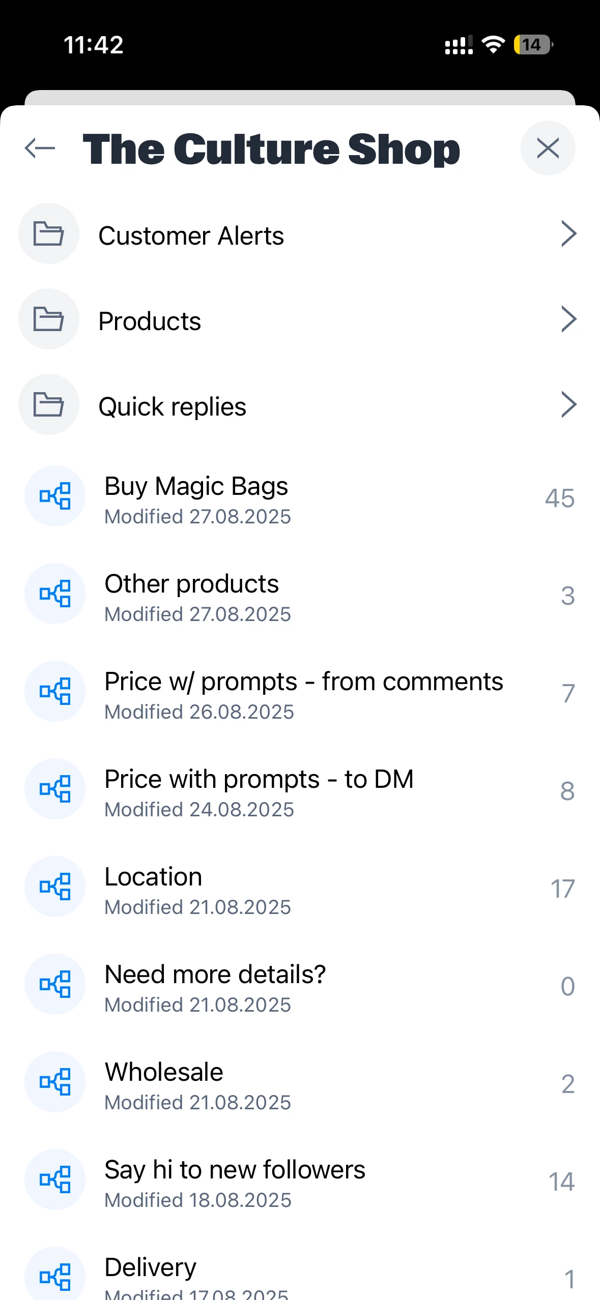 It would be really convenient to be able to search for an automation during a live chat on the ManyChat mobile app w/o having to click through folders and long lists of automations to get what the automation I want to push during a live chat.