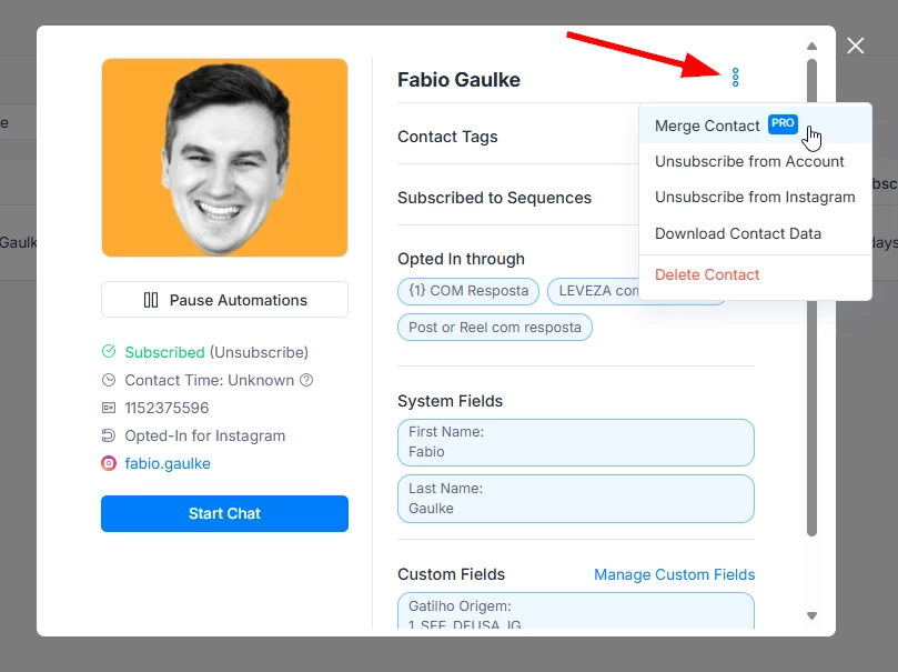But if merging contacts manually is enough for you, there's an option to do that in Manychat: