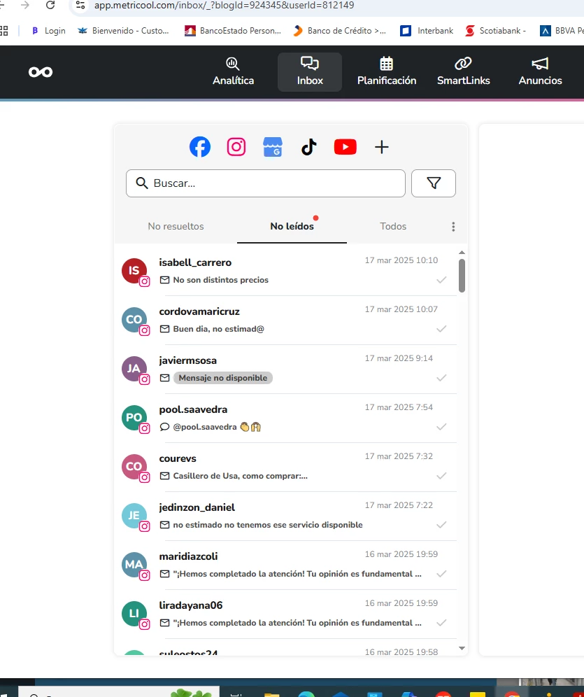 Dejo la imagen de como nos llega los comentarios de las redes desde metricool
