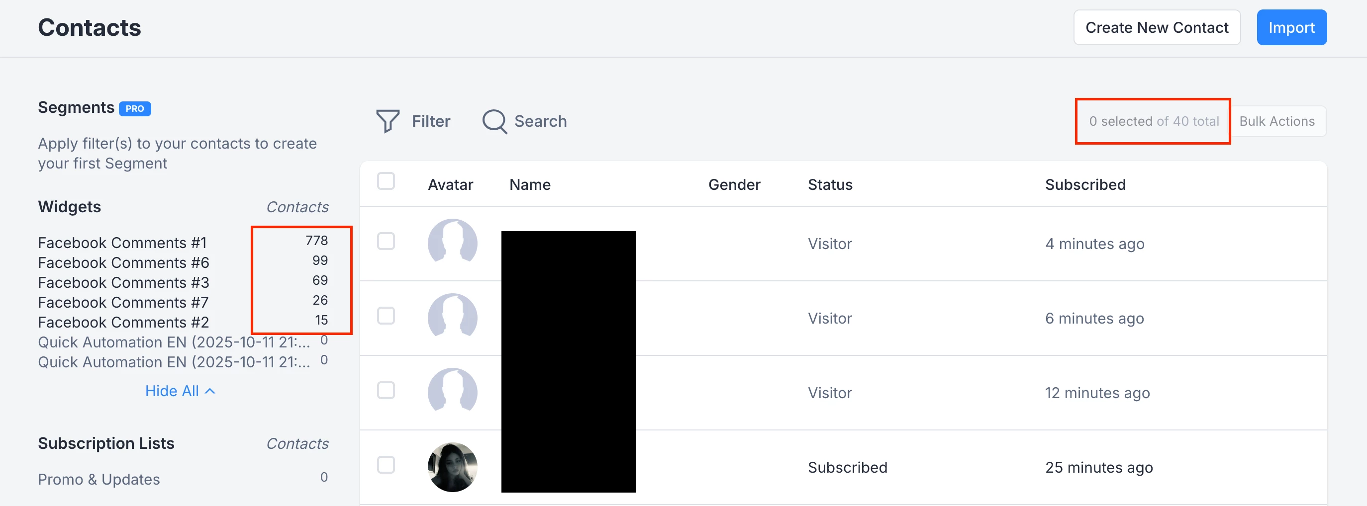 Free contacts limit