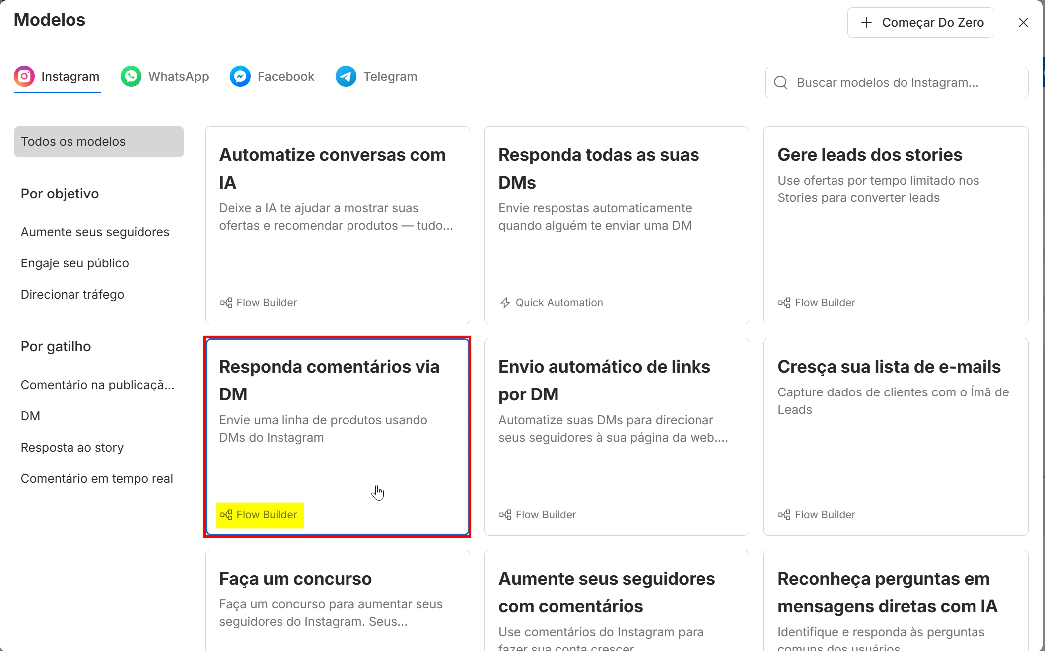 Outra coisa que você pode testar, é usar o construtor de fluxo tradicional. Você pode até mesmo usar os templates disponíveis que estejam identificados com o Flow Builder: