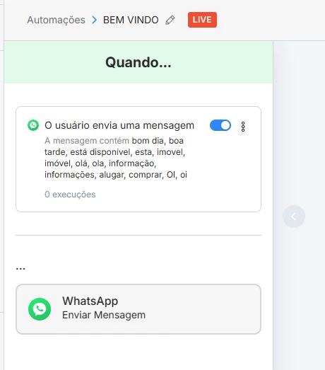 Hoje tenho uma automação configurada com resposta padrão / gatilho , e o comportamento é o seguinte: