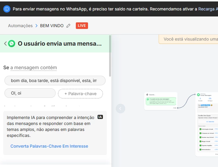 • O bot responde normalmente quando o cliente entra no fluxo