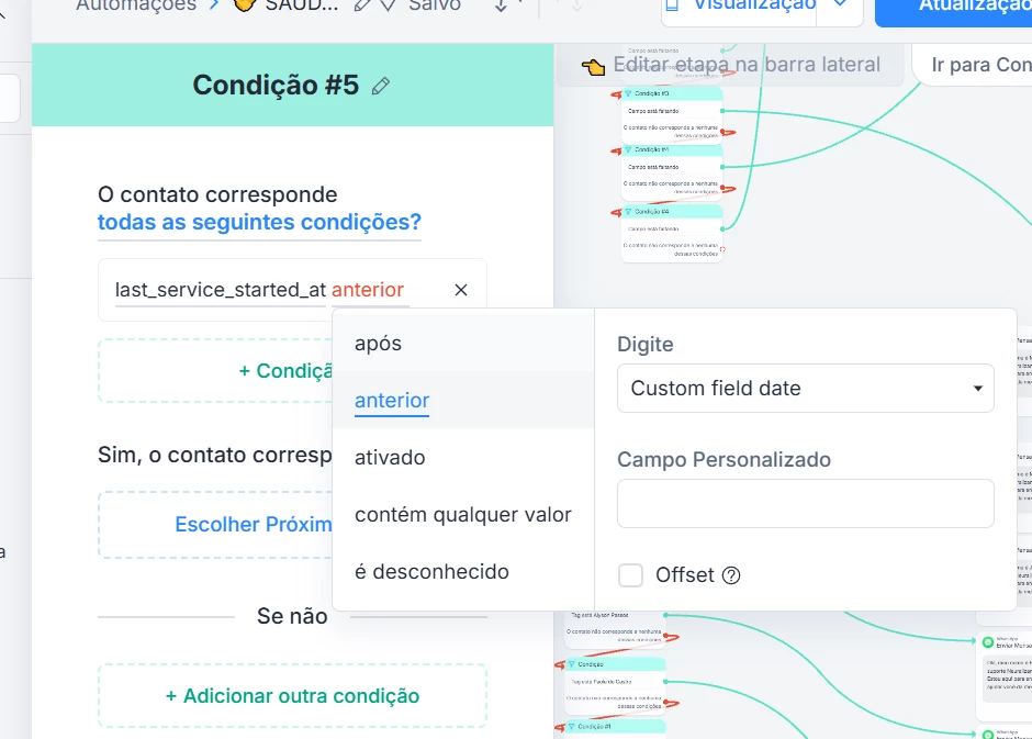 Por exemplo, você pode criar um campo personalizado do tipo data e hora. Sempre que o cliente enviar uma mensagem, o fluxo verifica esse campo: