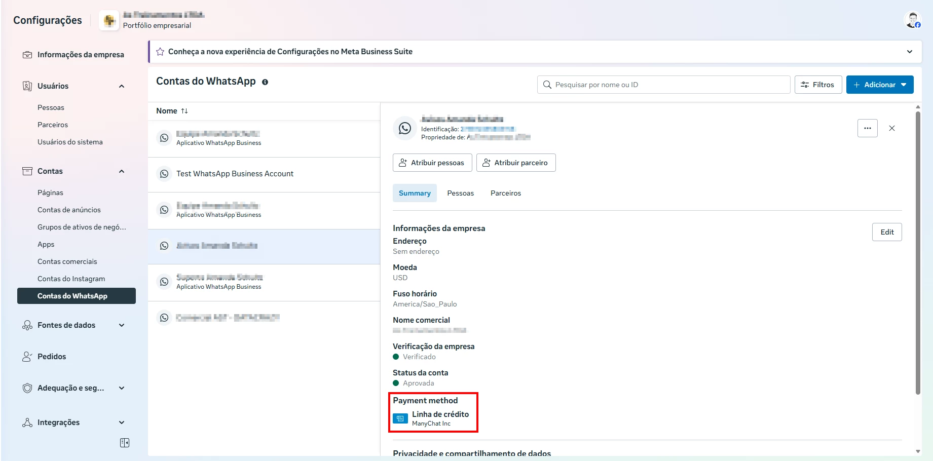 Eu comecei usando API pelo manychat, mas agora uso outra plataoforma. Porém, não consigo adicionar um método de pagamento, pq ele ta vinculado a linha de crédito do manychat.
