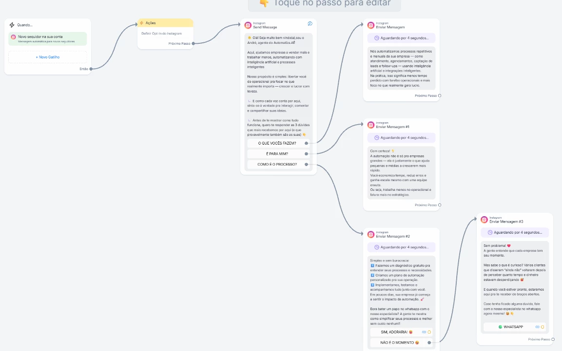 MEU FLUXO DE MENSAGENS PARA NOVOS SEGUIDORES NÃO ENTREGA DPS DO PRIMEIRO BLOCO (ENVIAR MENSAGEM) A AUTOMAÇÃO PARA NAS ALTERNATIVAS, POR QUE? COMO FAÇO PARA RESOLVER?