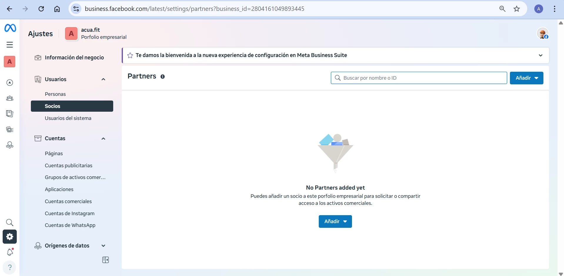 Prueba de que en Meta no tengo socios conectados: