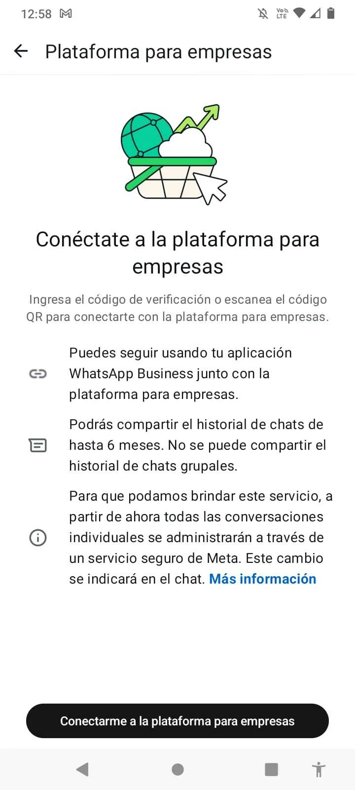 Prueba de que en Whatsapp bussines no tenemos empresas conectadas: