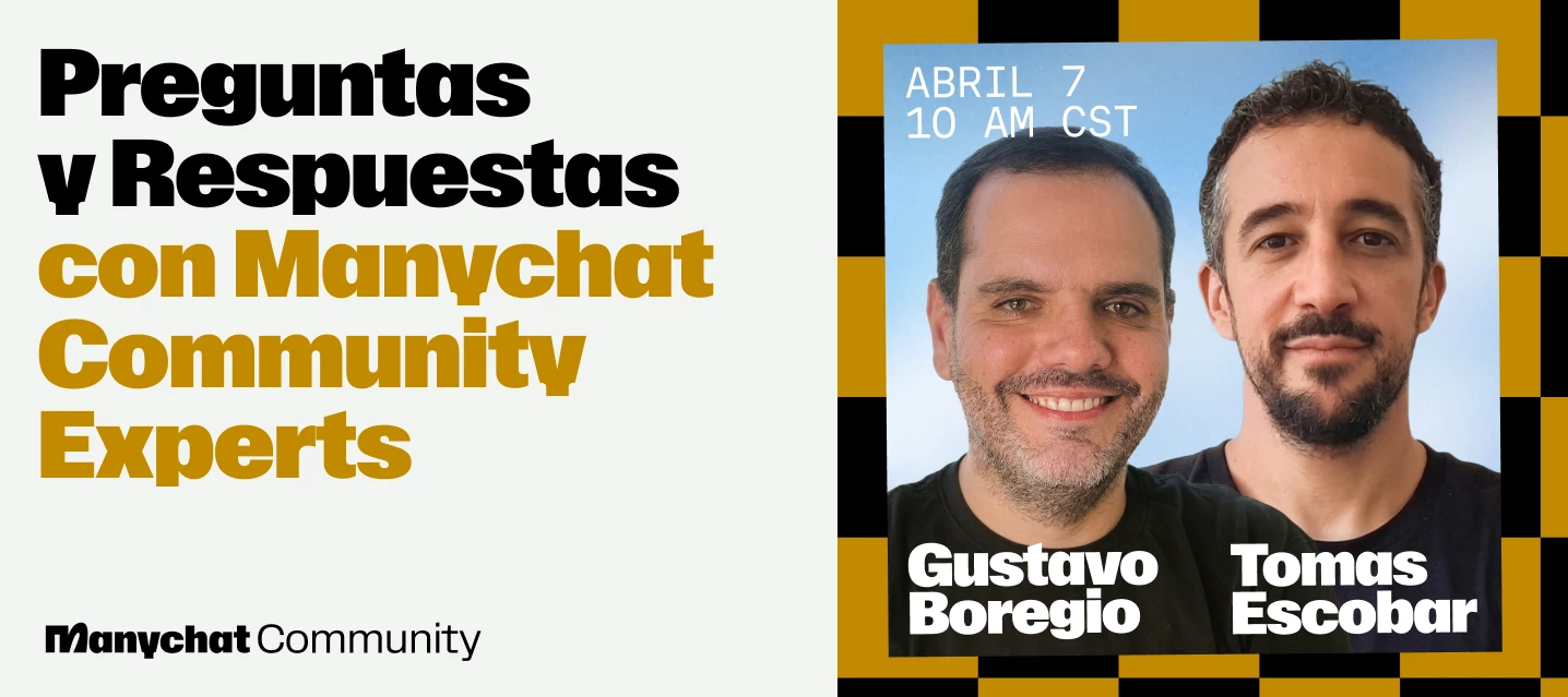 El 7 de abril a las 10 a. m. CST, tendremos un AMA en vivo con los expertos de la comunidad de Manychat: