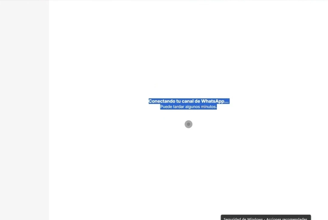 El problema: El proceso se queda congelado en el último paso que dice: "Conectando tu canal de WhatsApp... Puede tardar algunos minutos...". Lleva horas así.