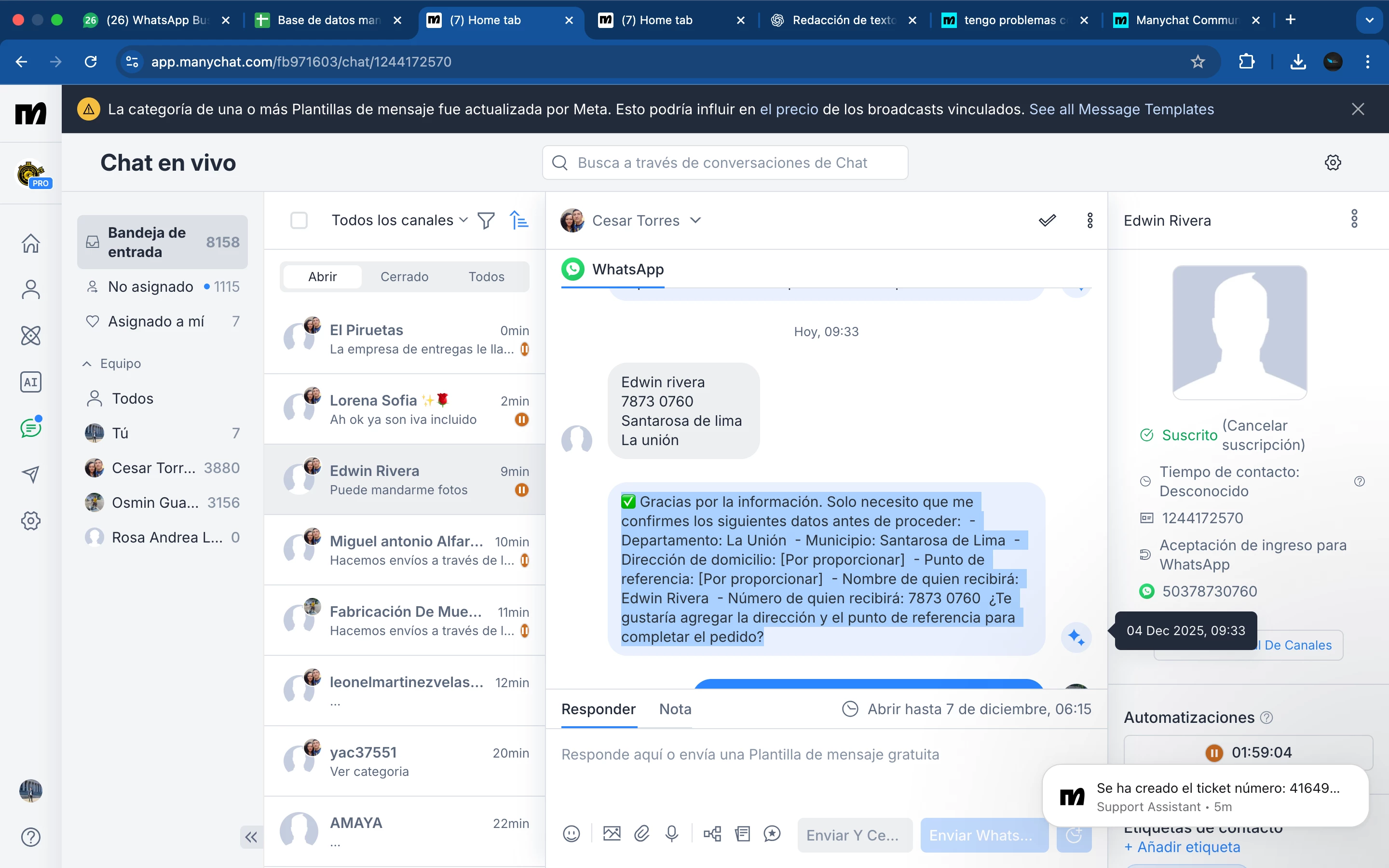 Quisiera reportar un problema que llevo experimentando desde hace más de una semana en varias de las cuentas que administro en ManyChat.